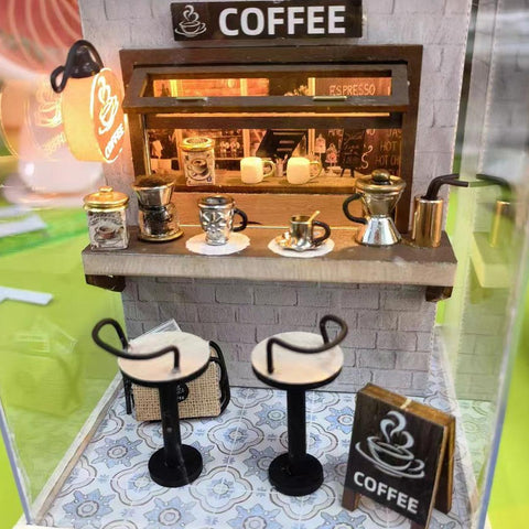 Smell the strong coffee aroma and enjoy this small and fresh coffee shop.