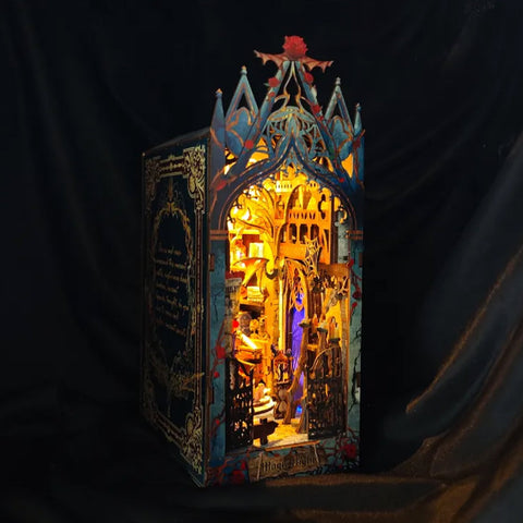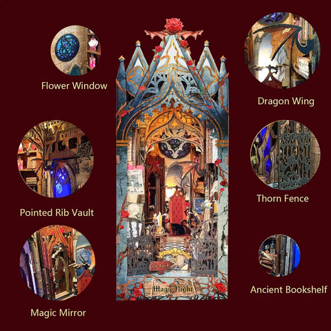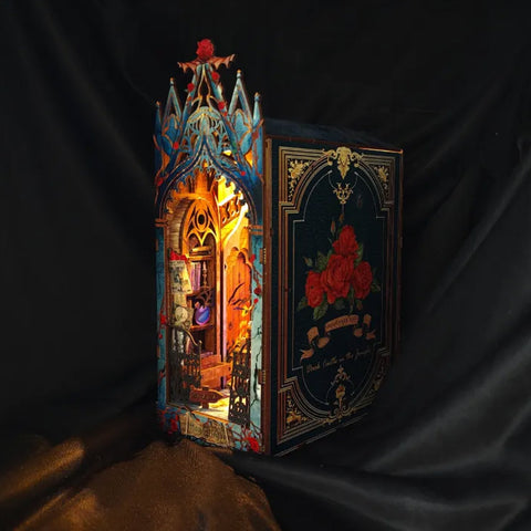Inspired by the magic and beauty of castles at twilight, this DIY Book Nook Kit features intricate details and 3D wooden puzzles that can be assembled to create a unique and realistic book nook.